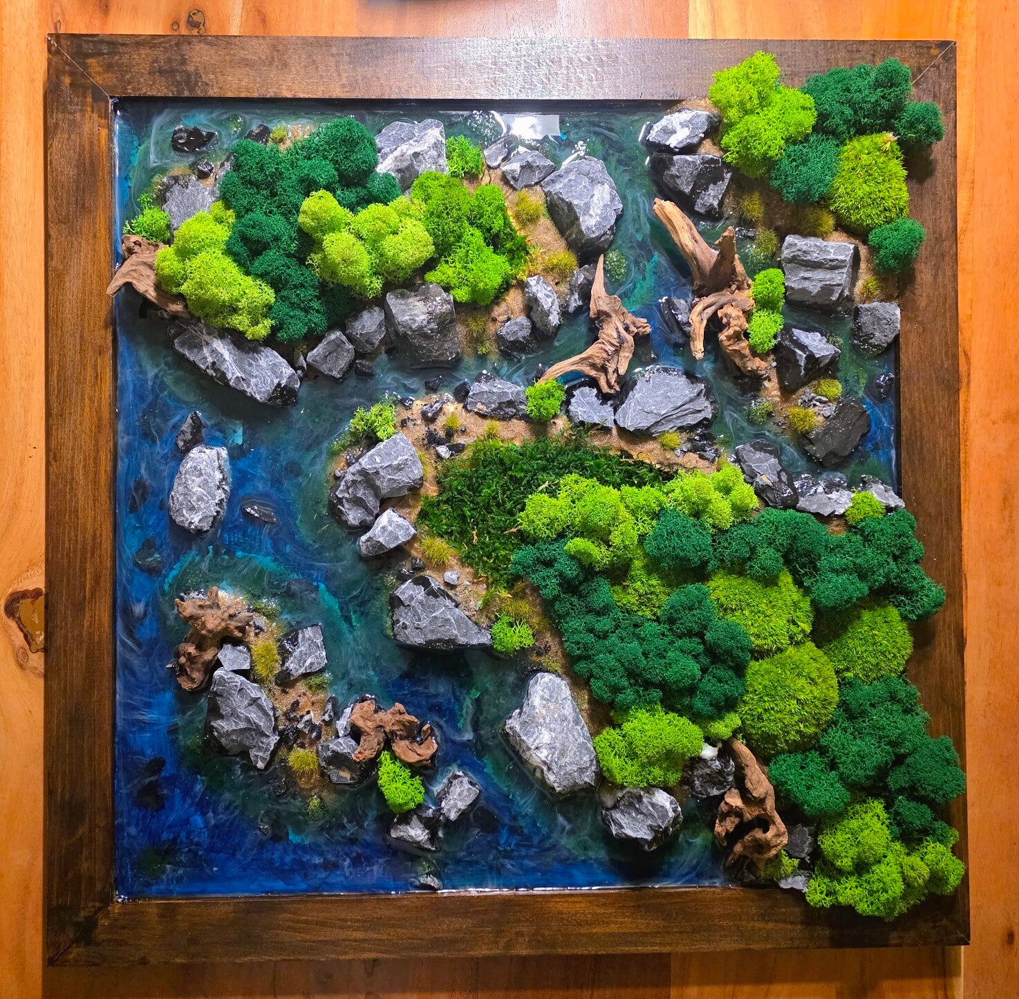 Schon lange hatte ich die Idee, einen eigenständigen Epoxidharz-Tisch zu entwerfen. Die notwendigen Ressourcen – Zeit, passende Ausrüstung und ausreichend Raum – fehlten mir zunächst, sodass dieses Vorhaben immer wieder in den Hintergrund trat. In diesem Jahr habe ich mir gezielt Zeit für die Umsetzung genommen und mit mehreren Kleinprojekten begonnen, um Erfahrungen zu sammeln, Prozesse zu optimieren und meine Ideen schrittweise zu realisieren. Nach zahlreichen Projekten habe ich meine Leidenschaft in Epoxidharz- und Moos-Wandbildern gefunden. So entstand Epoxid-SwissArt.ch.